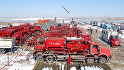 大(da)慶油(you)田大(da)壓裂(lie)(lie)突圍致密(mi)油(you)藏。圖為大(da)壓裂(lie)(lie)現場