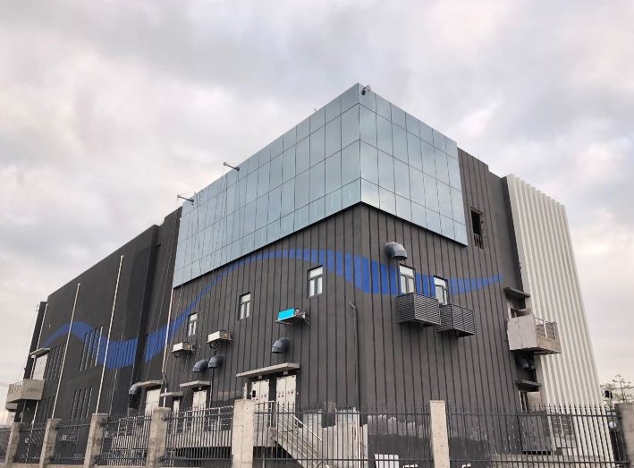 珠海110千伏人工(gong)島變電(dian)站工(gong)程(外(wai)立面寶藍色線(xian)條與港珠澳大橋相呼(hu)應)