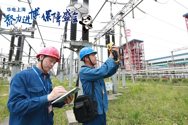 華電員工在進行設備檢查,全力以赴做好進博會保障工作