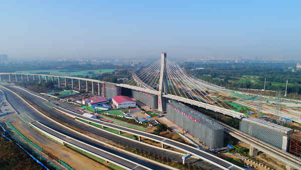 該斜拉(la)橋的建(jian)造在國內尚屬(shu)首例,為異型橋梁(liang)無支撐高空轉體(ti),控(kong)制難度(du)較(jiao)大,且(qie)施(shi)工(gong)(gong)(gong)臨(lin)近(jin)徐(xu)蘭高鐵營業(ye)線,安全(quan)風(feng)險極(ji)大。建(jian)設過(guo)程中,項目部積極(ji)開展(zhan)技(ji)術(shu)攻關(guan),多(duo)次優化施(shi)工(gong)(gong)(gong)方案(an),采用多(duo)重安全(quan)防(fang)護,通(tong)過(guo)信息化手段強化轉體(ti)過(guo)程中的實(shi)時監測,將施(shi)工(gong)(gong)(gong)精度(du)控(kong)制在毫米級,實(shi)現橋梁(liang)安全(quan)、高質轉體(ti)。