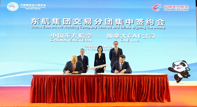 11月6日,在(zai)首屆中國(guo)國(guo)際(ji)進口博覽會上,東航集團一天之(zhi)內(nei)完成10場簽(qian)約(yue),先后與羅羅、CAE、埃(ai)克(ke)森美孚、殼牌(pai)、法荷(he)航、GE、CFM國(guo)際(ji)、霍尼韋爾(er)、穆格、世紀(ji)航娛等全球合(he)(he)作伙伴簽(qian)訂合(he)(he)約(yue)。