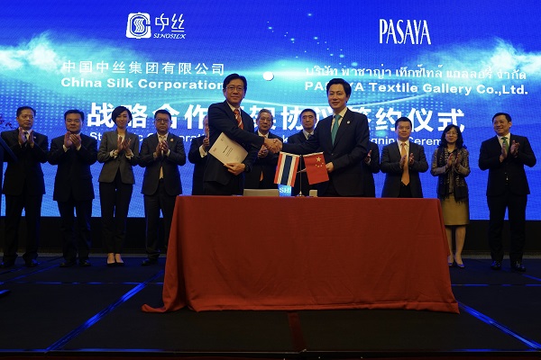 11月6日,在(zai)首屆(jie)中國(guo)國(guo)際進口博覽會期間,中國(guo)中絲集團(tuan)有限公司與泰(tai)國(guo)PASAYA公司戰略(lve)(lve)合(he)作(zuo)框架(jia)協(xie)議簽(qian)約儀式在(zai)滬舉(ju)行。雙方將積極共(gong)同創新(xin)商業(ye)模式,在(zai)優質(zhi)蠶(can)桑(sang)基地建設、絲綢成(cheng)品品牌合(he)作(zuo)、國(guo)際紡織市(shi)場開拓與繭絲綢綜合(he)開發等多(duo)領域建立全(quan)面戰略(lve)(lve)合(he)作(zuo)伙伴(ban)關系。