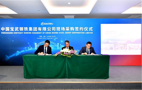 11月7日,首屆中(zhong)國(guo)國(guo)際進(jin)口(kou)博覽(lan)會進(jin)入第3天。上午,位于國(guo)家會展中(zhong)心(上海(hai))的(de)M302會議室(shi)內人頭攢(zan)動、熱鬧非凡,中(zhong)國(guo)寶武(wu)現場采購(gou)簽約儀式在(zai)這里舉行。一項項合(he)同的(de)簽訂、一筆筆交易的(de)達成,彰顯了中(zhong)國(guo)寶武(wu)擴大(da)開放(fang)的(de)決心和(he)取(qu)得的(de)成果(guo)。中(zhong)國(guo)寶武(wu)總經理、黨(dang)委副書記(ji)胡望明(ming)等中(zhong)國(guo)寶武(wu)方面有關負責(ze)人,與外方企業代表、各界(jie)媒體等百余人共(gong)同見證了這一歷史時(shi)刻。