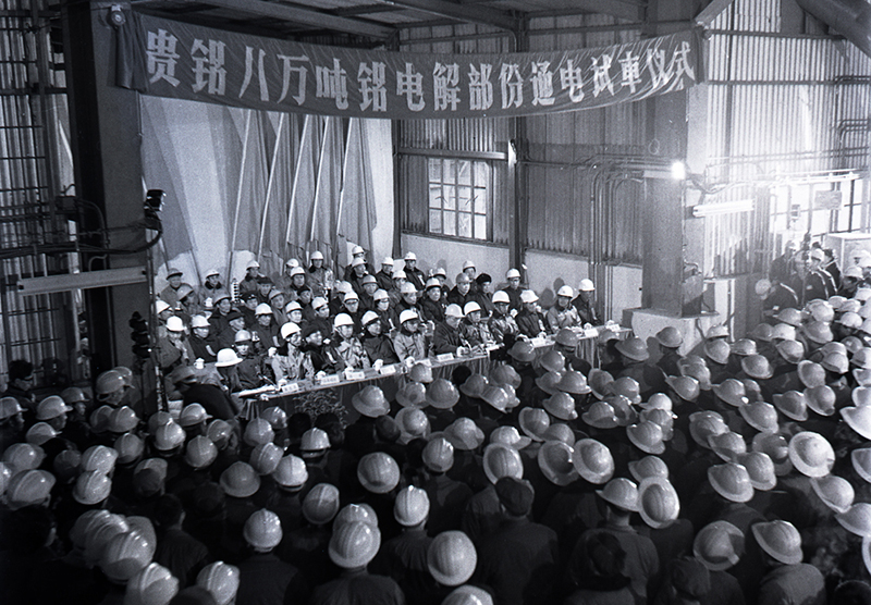 圖為(wei)1981年12月18日,從國(guo)外成套引進的貴鋁8萬(wan)噸鋁電解生(sheng)產線部(bu)分(fen)通電試車