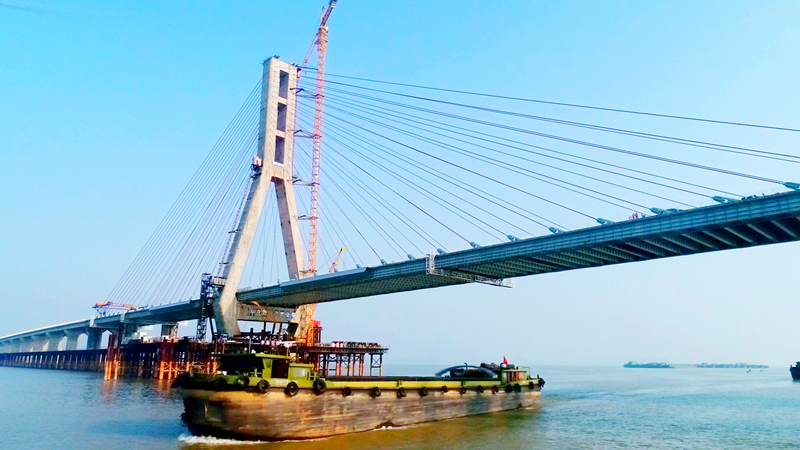 橋區(qu)位于素有“東方百慕大(da)”之稱(cheng)的鄱陽湖(hu)老(lao)爺廟水(shui)(shui)(shui)域(yu),該(gai)區(qu)域(yu)水(shui)(shui)(shui)文氣象條件極(ji)其(qi)復(fu)雜,水(shui)(shui)(shui)位受(shou)汛期影響極(ji)大(da),高低水(shui)(shui)(shui)位落差可達10米。項(xiang)目(mu)團隊開展(zhan)技術攻關,研發出“深水(shui)(shui)(shui)基(ji)礎鎖口(kou)鋼管樁圍堰施(shi)工技術”,解決大(da)橋主塔(ta)基(ji)礎施(shi)工難題。鄱陽湖(hu)二橋引橋上部結(jie)構為先張法預制的35米T梁,在國內屬首次大(da)規模應用。主塔(ta)塔(ta)柱施(shi)工采用“大(da)塊鋼模板+專業液(ye)壓爬(pa)模”系(xi)統(tong),通過優化(hua)改進(jin)預應力深埋錨施(shi)工工藝,極(ji)大(da)提(ti)升了(le)塔(ta)柱質量和“顏值”。