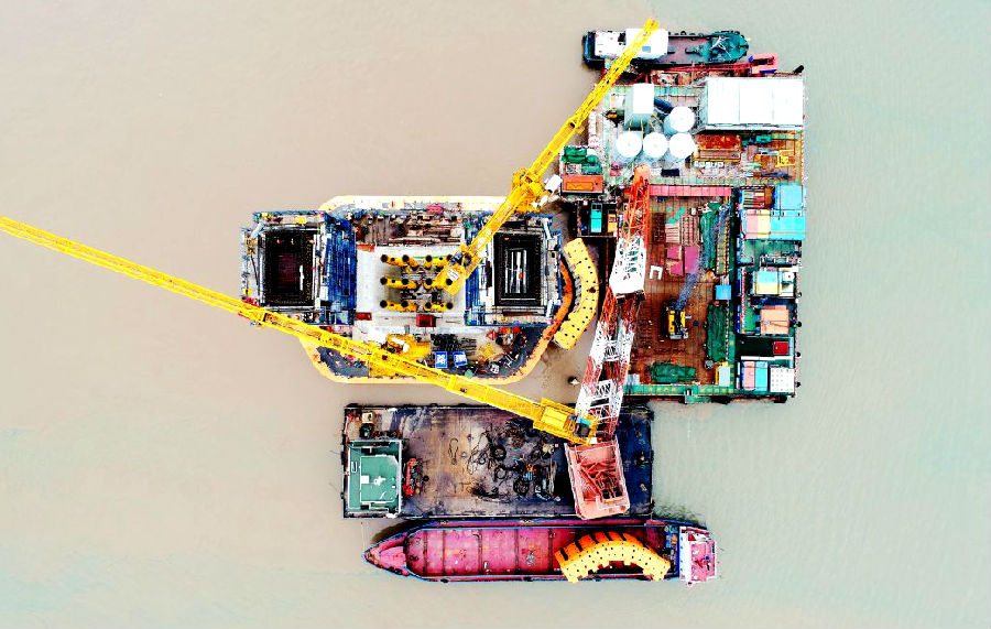 舟(zhou)岱(dai)跨(kua)(kua)海大橋主通航孔橋外(wai)層防(fang)撞鋼套箱(xiang)共計52塊,計劃5月初安裝完成。屆時(shi),舟(zhou)岱(dai)跨(kua)(kua)海大橋主通航孔橋承臺將身(shen)披“黃(huang)金圣甲”,屹立在大海中央(yang)。