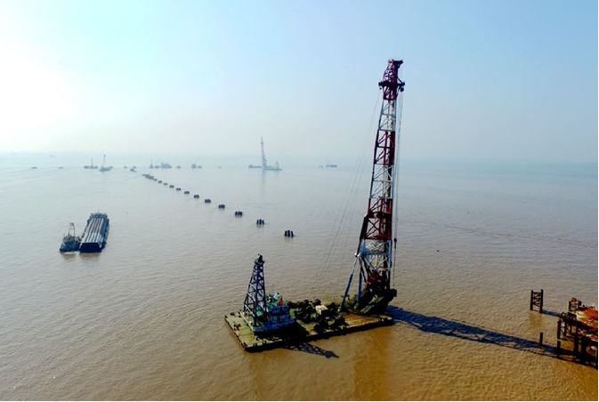 近日,寧波舟山港主通(tong)道舟岱(dai)跨海大橋2標首根108米鋼管(guan)樁(zhuang),由海虹6號打(da)(da)樁(zhuang)船打(da)(da)設完畢(bi),沉(chen)樁(zhuang)精度符合設計及規范要求。