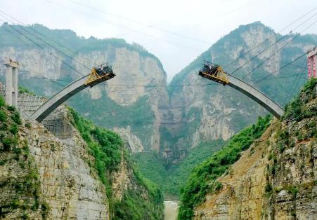 目前,該橋正在進行主(zhu)拱(gong)圈施工,預計7月完成主(zhu)拱(gong)圈合攏,今年年底通車。