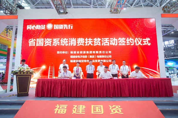 第十七(qi)屆中國(guo)?海(hai)峽項目創新成果交(jiao)易會期(qi)間,福(fu)建(jian)(jian)省(sheng)國(guo)資(zi)委(wei)于6月19日召開(kai)了“省(sheng)國(guo)資(zi)系統‘同心助貧,國(guo)資(zi)先行’消費(fei)扶貧活動啟動儀式暨(ji)產品服務推介會”。17家福(fu)建(jian)(jian)省(sheng)國(guo)資(zi)委(wei)所出資(zi)業及(ji)部分重(zhong)要子企(qi)業、福(fu)建(jian)(jian)省(sheng)國(guo)資(zi)系統掛鉤幫扶的9個省(sheng)級扶貧開(kai)發重(zhong)點縣(xian)共100多人參(can)加活動。