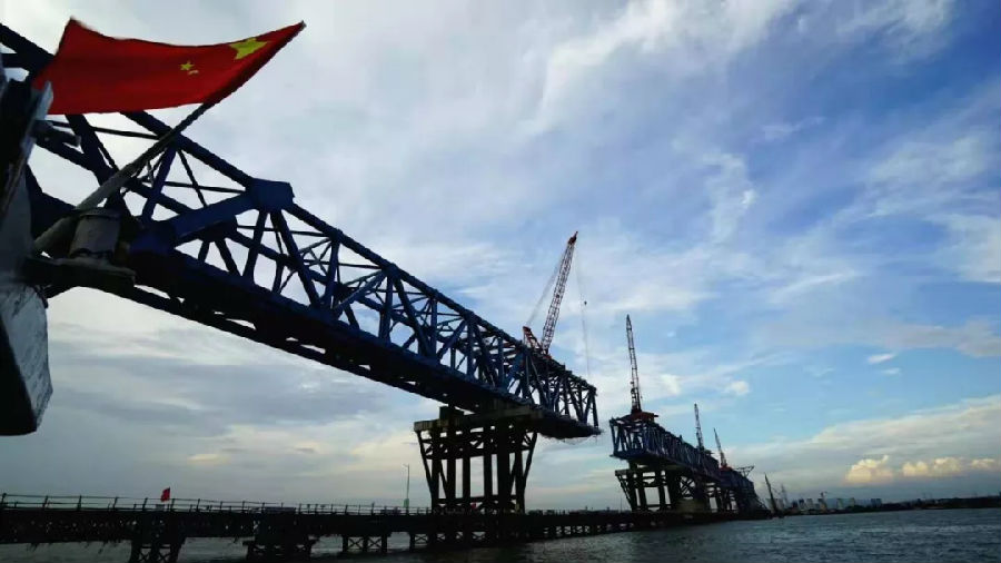 8月25日上午10時18分,隨(sui)著橫跨(kua)洪奇(qi)瀝(li)水道南北(bei)兩邊(bian)的(de)鋼(gang)桁(heng)梁(liang)成(cheng)(cheng)功對接,南沙港鐵路(lu)(lu)跨(kua)洪奇(qi)瀝(li)特大橋(qiao)360米跨(kua)徑的(de)主跨(kua)順利實現合龍,一舉超越(yue)主跨(kua)336米的(de)滬通鐵路(lu)(lu)天生(sheng)港公鐵合建橋(qiao),成(cheng)(cheng)為世界(jie)最大跨(kua)度的(de)鐵路(lu)(lu)鋼(gang)桁(heng)柔性拱(gong)結構橋(qiao)梁(liang)。