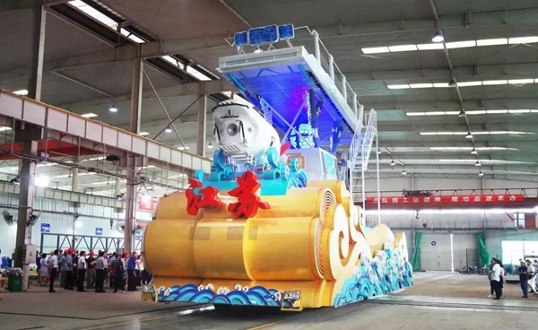 蘇(su)豪控股集(ji)(ji)團以(yi)旗下(xia)愛濤文(wen)化產業(ye)公司(si)(si)為(wei)主體,組織精干力量,肩負起(qi)國慶江蘇(su)彩車(che)總承(cheng)制(zhi)光榮(rong)使(shi)命,協(xie)同南京(jing)藝(yi)術(shu)學院對設計方案進(jin)行(xing)深化落實(shi);與(yu)徐工(gong)汽車(che)制(zhi)造(zao)有(you)(you)限公司(si)(si)完善整車(che)底盤(pan)改裝;會(hui)同航天(tian)晨光股份有(you)(you)限公司(si)(si)就外飾(shi)改裝工(gong)程研究制(zhi)定工(gong)藝(yi)及結構(gou)方案,實(shi)現優質結構(gou)、精準工(gong)藝(yi);配合(he)省廣電總臺開展(zhan)宣傳視(shi)頻內(nei)容(rong)的制(zhi)作(zuo)與(yu)播(bo)放;協(xie)助省演藝(yi)集(ji)(ji)團做好展(zhan)演演員(yuan)相關演出工(gong)作(zuo);協(xie)作(zuo)航天(tian)思創(北京(jing))科技(ji)有(you)(you)限公司(si)(si)完成彩車(che)組合(he)件;同時聯合(he)浙(zhe)江佳合(he)文(wen)化科技(ji)股份有(you)(you)限公司(si)(si)、南京(jing)洛普(pu)科技(ji)有(you)(you)限公司(si)(si)完成技(ji)術(shu)對接,代表江蘇(su)加(jia)入蔚為(wei)壯觀的彩車(che)游行(xing)隊(dui)伍,為(wei)祖國70周年大慶獻(xian)禮。