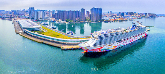 一艘郵輪停靠在山東港口集團青島國際郵輪母港。(資料照片)