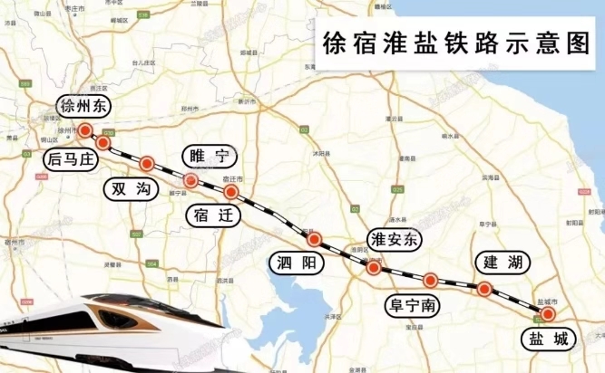 徐(xu)(xu)宿(su)淮(huai)鹽(yan)鐵(tie)路(lu)西起徐(xu)(xu)州(zhou)(zhou)鐵(tie)路(lu)樞紐徐(xu)(xu)州(zhou)(zhou)東(dong)站(zhan),經睢寧(ning)縣(xian)、宿(su)遷(qian)市、泗陽縣(xian),經淮(huai)安(an)至鹽(yan)城(cheng),全長(chang)約316公里,設計(ji)時(shi)速為(wei)250公里。全線設徐(xu)(xu)州(zhou)(zhou)東(dong)、觀音機場、睢寧(ning)、宿(su)遷(qian)、泗陽、淮(huai)安(an)東(dong)、阜寧(ning)南、建湖、鹽(yan)城(cheng)等9個車站(zhan)。