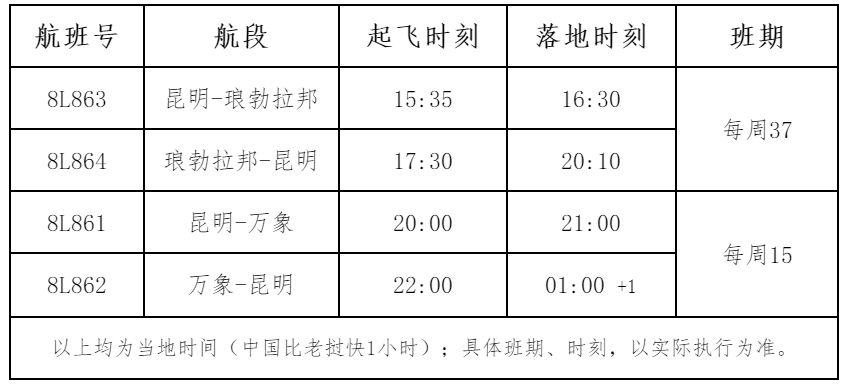 祥鵬航空計(ji)劃(hua)于(yu)2019年(nian)12月22日起開(kai)通昆明=瑯(lang)勃拉邦(bang)、12月23日起開(kai)通昆明=萬象航線。