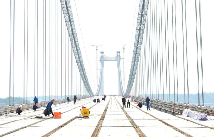 湖北(bei)交投(tou)集團投(tou)資建設的白洋長江公(gong)路(lu)大(da)橋項目(mu)工(gong)地,首批返(fan)崗的橋面(mian)施工(gong)作業隊正在(zai)進行橋面(mian)板(ban)吊裝焊接施工(gong)作業。這是繼赤壁長江大(da)橋建設項目(mu)復工(gong)后,湖北(bei)交投(tou)又一個復工(gong)的長江大(da)橋項目(mu)。