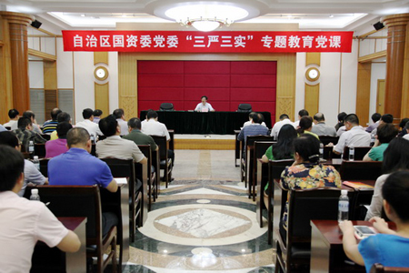 5月8日,廣西國資委黨委舉辦“三嚴三實”專題教育黨課,廣西國資委主任、黨委書記管躍慶以“用‘三嚴三實’”正作風樹國資國企好形象”為題,為國資委機關和國資委管理班子企業講專題黨課,以講黨課的形式貫徹落實中央、廣西自治區黨委“三(san)嚴三(san)實”專題教育有(you)關精神,啟動國資委機(ji)關及直屬企業“三(san)嚴三(san)實”專題教育。