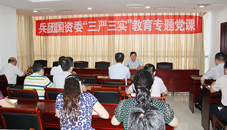 在扎實完成“三嚴三實”第一專題黨課及專題研討后,經過認真籌備,近日,新疆生產建設兵團國資委黨委副書記、紀委書記張曉憑圍繞“嚴以律己”這一專題,給兵團國資委機關全體人(ren)員上了一堂生動的(de)黨課。