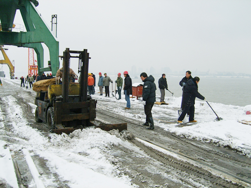 武港集團漢口公司安全生產兩不誤堅持雪中作業