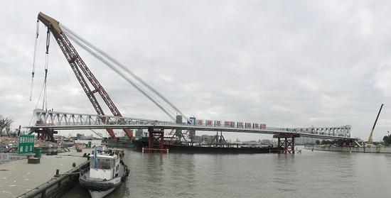 11月5日,隨著(zhu)最后一個(ge)200余噸的鋼橋(qiao)(qiao)(qiao)(qiao)塔安裝到位,上(shang)海建(jian)工承(cheng)建(jian)川楊(yang)河(he)(he)橋(qiao)(qiao)(qiao)(qiao)主橋(qiao)(qiao)(qiao)(qiao)落成(cheng)。川楊(yang)河(he)(he)橋(qiao)(qiao)(qiao)(qiao)屬于(yu)特(te)大型橋(qiao)(qiao)(qiao)(qiao)梁,由(you)法國JFA建(jian)筑事務所(suo)進(jin)行方案設計,采用半自錨斜(xie)拉(la)桁(heng)(heng)架(jia)梁結構(gou)形式,是全國首(shou)座(zuo)采用了(le)桁(heng)(heng)架(jia)斜(xie)拉(la)索組合體(ti)系的“一跨過(guo)河(he)(he)”橋(qiao)(qiao)(qiao)(qiao),跨度達到了(le)165米。整橋(qiao)(qiao)(qiao)(qiao)造型新穎,與老川楊(yang)河(he)(he)橋(qiao)(qiao)(qiao)(qiao)拱圈交相輝映(ying),一“靜”一“動(dong)”、一“弓”一“箭”,相映(ying)成(cheng)趣。此前,由(you)上(shang)海建(jian)工承(cheng)建(jian)的六座(zuo)浦東(dong)濱(bin)江園橋(qiao)(qiao)(qiao)(qiao)中的另外五座(zuo)——洋(yang)涇(jing)港橋(qiao)(qiao)(qiao)(qiao)、白蓮涇(jing)橋(qiao)(qiao)(qiao)(qiao)、倪家浜橋(qiao)(qiao)(qiao)(qiao)、三林(lin)北港橋(qiao)(qiao)(qiao)(qiao)、三林(lin)塘港橋(qiao)(qiao)(qiao)(qiao)已經全部貫通(tong),浦東(dong)濱(bin)江新的風景線即(ji)將靚麗呈現。