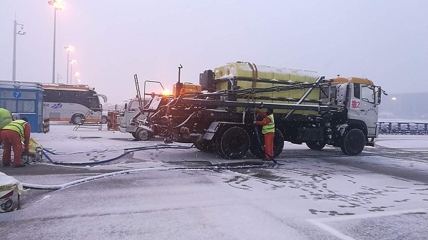 在整個機(ji)(ji)場冰雪保障(zhang)系統(tong)工(gong)程中,跑道除(chu)冰和飛機(ji)(ji)除(chu)冰是否及時到(dao)位,是機(ji)(ji)場運(yun)行的基本條件,鄭州(zhou)機(ji)(ji)場近百臺除(chu)冰設(she)備和數百名工(gong)作人員連續奮(fen)戰(zhan),1月(yue)6日(ri)至1月(yue)7日(ri)凌(ling)晨,共為飛機(ji)(ji)除(chu)冰172架,確保了大多數航班的執行。1月(yue)7日(ri)早,鄭州(zhou)機(ji)(ji)場就解除(chu)了大面積航班延誤藍(lan)色預(yu)警,到(dao)1月(yue)7日(ri)6點,鄭州(zhou)機(ji)(ji)場航班運(yun)行正常,兩條跑道有效運(yun)行。