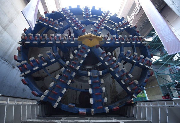 本次使(shi)用的“筑夢號(hao)”盾(dun)(dun)(dun)構(gou)機(ji)(ji)是(shi)北(bei)京(jing)城(cheng)(cheng)建(jian)集團有(you)限責任公司(簡稱北(bei)京(jing)城(cheng)(cheng)建(jian)集團)針對該工程(cheng)長(chang)距離全斷面密集卵礫石地層(ceng)掘進的特點(dian),專門(men)采購的全新(xin)高性能輻條式土壓平(ping)衡盾(dun)(dun)(dun)構(gou)機(ji)(ji),刀盤直徑為9.04米(mi),主機(ji)(ji)長(chang)11.9米(mi),整(zheng)機(ji)(ji)總長(chang)120米(mi),總重量達1409噸(dun),是(shi)北(bei)京(jing)城(cheng)(cheng)建(jian)集團自北(bei)京(jing)地鐵(tie)5號(hao)線率(lv)先引入盾(dun)(dun)(dun)構(gou)法施(shi)工以來(lai),所擁有(you)的最(zui)大的盾(dun)(dun)(dun)構(gou)機(ji)(ji)。區(qu)別于以往城(cheng)(cheng)市地鐵(tie)6米(mi)直徑盾(dun)(dun)(dun)構(gou)機(ji)(ji),超過8米(mi)直徑盾(dun)(dun)(dun)構(gou)機(ji)(ji)在(zai)國內市域(yu)快(kuai)速軌道交通(tong)盾(dun)(dun)(dun)構(gou)隧(sui)道施(shi)工領域(yu)的應用,有(you)望成為未來(lai)發展趨勢。