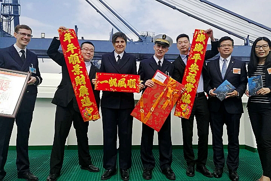 2月15日(大年(nian)(nian)三十(shi)),鹽(yan)田(tian)港(gang)3期(qi)碼(ma)頭迎來了達飛“小王子”號巨輪首航。這是(shi)鹽(yan)田(tian)港(gang)今年(nian)(nian)以來停(ting)泊的(de)最大船(chuan)舶,它在(zai)鹽(yan)田(tian)港(gang)停(ting)留一天裝卸(xie)貨物。市(shi)港(gang)航與貨運(yun)管(guan)理局負(fu)責人(ren)登船(chuan)向船(chuan)長贈送了深(shen)圳港(gang)的(de)徽(hui)標,歡迎其(qi)來深(shen)圳港(gang)過中國年(nian)(nian)。