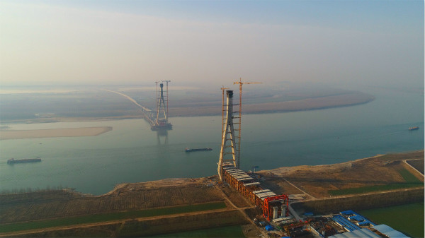 在北岸(an)主(zhu)塔施工過程中,大(da)橋(qiao)建(jian)設者們先(xian)后(hou)攻克(ke)了(le)超厚(hou)粉細砂地層長大(da)鉆孔(kong)灌注樁(zhuang)施工、大(da)型承臺水(shui)下封底(di)施工及大(da)體(ti)積(ji)混(hun)凝土(tu)防開(kai)裂等(deng)技術難題(ti),順利完成(cheng)了(le)北岸(an)主(zhu)塔封頂目標。據目前(qian)進度,大(da)橋(qiao)南岸(an)主(zhu)塔也(ye)將在4月初(chu)封頂,預計2019年底(di)建(jian)成(cheng)通車。