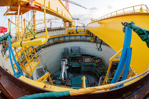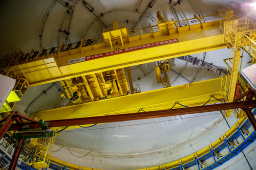 目前,該環形(xing)起重(zhong)機正(zheng)在用于(yu)安裝反應堆廠房(fang)內的重(zhong)型設備。