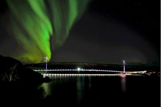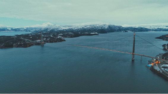 該橋(qiao)全長(chang)1533米(mi),主(zhu)跨(kua)1145米(mi),位于地球上最北(bei)(bei)(bei)端的(de)(de)港口城市-挪威北(bei)(bei)(bei)部納爾維克(ke)市,橫跨(kua)北(bei)(bei)(bei)部奧福特峽灣(wan),被(bei)譽為“與北(bei)(bei)(bei)極(ji)光(guang)相伴的(de)(de)橋(qiao)”,是歐(ou)洲第五大、挪威第二大懸(xuan)索(suo)橋(qiao),也是北(bei)(bei)(bei)極(ji)圈跨(kua)度最大的(de)(de)懸(xuan)索(suo)橋(qiao)、歐(ou)洲第一座上千米(mi)采用預制平行絲股工藝(yi)(PPWS)主(zhu)纜的(de)(de)公(gong)路鋼箱梁懸(xuan)索(suo)橋(qiao)。