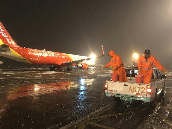 三是場(chang)內交通道路(lu)(lu)除(chu)冰雪(xue)(xue)(xue)。進入機場(chang)以后(hou)的(de)(de)主(zhu)要道路(lu)(lu)、高架橋、隧道、停車(che)(che)(che)場(chang)也是決定旅客能(neng)否(fou)正(zheng)常出行的(de)(de)關鍵。場(chang)區中心聯合后(hou)勤單(dan)位(wei)共200余人,連夜進行了(le)持續10小時(shi)的(de)(de)除(chu)雪(xue)(xue)(xue)作業(ye),出動多功能(neng)掃雪(xue)(xue)(xue)車(che)(che)(che)1臺、大型(xing)推雪(xue)(xue)(xue)車(che)(che)(che)2臺、手推式掃雪(xue)(xue)(xue)車(che)(che)(che)4臺、撒鹽(yan)車(che)(che)(che)1臺,累計(ji)消耗工業(ye)鹽(yan)17.5噸。