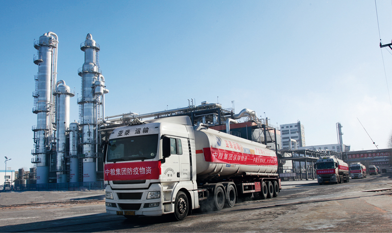 煤電油氣運和糧油副食產品等基礎產品服務穩定供應,是疫情防控工作的重要保障。中糧集團快速調整產能,全力復工生產,加強米面油肉乳酒精等產品市場供給,服務疫情防控,保障人民群眾正常基本生活。圖為2020年2月3日,中糧集團轉產發運酒精消毒劑。 國務院國資委供圖