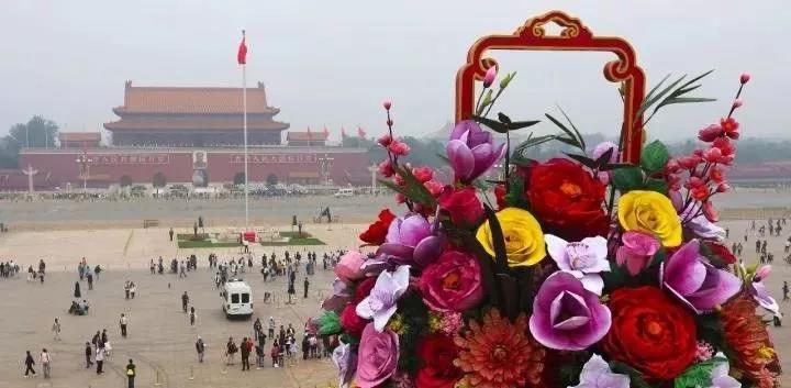 天安門廣場“大花籃”迎國慶。新華社記者 殷剛 攝