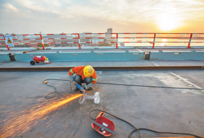 橋面板焊縫打磨。