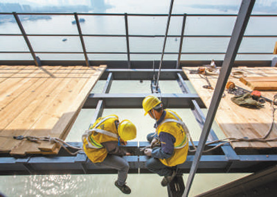 南(nan)京(jing)長江大橋橋高24米(mi)(mi),約合8層樓,其下是(shi)每(mei)隔數分鐘就(jiu)通行(xing)一列火車的(de)(de)京(jing)滬鐵(tie)路(lu),再下面(mian)則(ze)是(shi)深不可(ke)測的(de)(de)滔滔江水。項目總工程師(shi)婁(lou)松介紹(shao),為(wei)確(que)保鐵(tie)路(lu)運行(xing)安全,改造時設置了長達2030.3米(mi)(mi)、寬約21米(mi)(mi)的(de)(de)鐵(tie)路(lu)防護棚架。