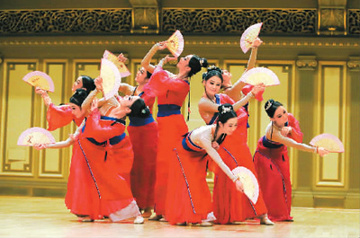在羅馬尼亞首都布加勒斯特的雅典娜音樂廳,北京舞蹈學院的舞者表演大型舞劇《國風》。克里斯泰爾攝(新華社發)