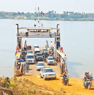 格羅奇馬縣民眾如今還在使用輪渡通過湄公河。(記者 趙益普攝)