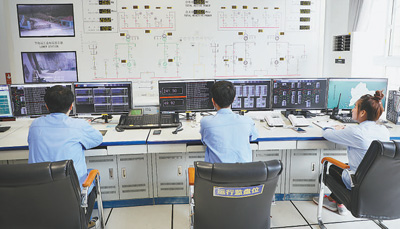額勒賽水電站員工在中控室內值班。(記者 趙益普攝)
