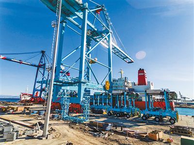 2018年12月,集裝箱碼頭采購的首批設備第二船機械設備到港。(瓦多碼頭控股公司供圖 制圖 王 婷)