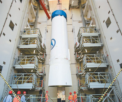 長征三號乙運載火箭吊裝場面。(中國航天科技集團一院供圖)