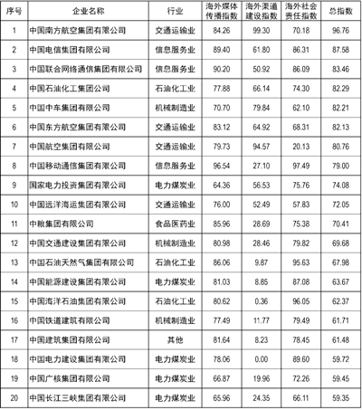 中(zhong)央企業海(hai)外形(xing)象(xiang)傳播指數排行榜(bang):