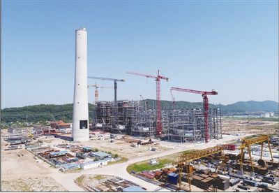 在海陽燃煤電站項目建設現場,各項工程正有序推進。(記者 劉 剛攝)