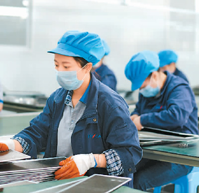 湖北通城縣平安新材料產業園車間內的生產場景,其產品熱銷“一帶一路”。劉建平攝(人民視覺)