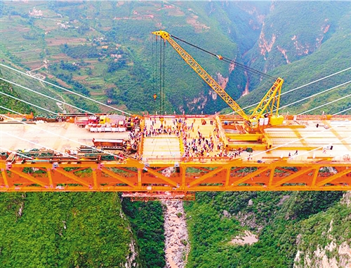 北盤江大橋建設工地。(貴州省高速公路公司供圖)