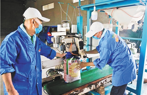 上圖 在中化農業山東陽信MAP技術服務中心,工作人員正在包裝麥種。