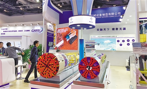 在第十五屆中國國際現代化鐵路技術裝備展上,中交天和公司展示了最新技術的盾構機。(記者 齊 慧攝)