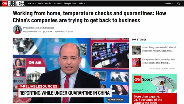 美國有線電視新聞網:定時測溫、居家辦公,中國企業如何逐步復工復產