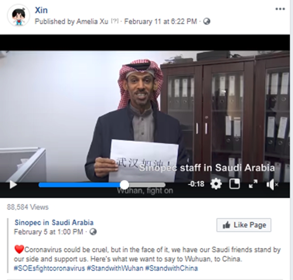海外網友、央企海外員工發出正能量聲援武漢
