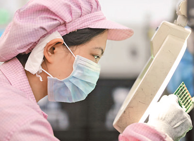 3月(yue)31日(ri),在中國信(xin)科集團(tuan)烽(feng)火(huo)通信(xin)公(gong)司系(xi)統設(she)備制(zhi)造(zao)(zao)部的5G智造(zao)(zao)車(che)間,工(gong)人正在生產相關設(she)備。人民日(ri)報(bao)記(ji)者 李(li)舸攝(she)