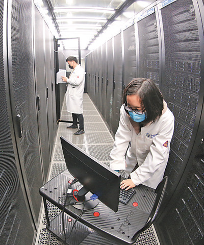 3月(yue)24日,中國移(yi)動(襄陽)數(shu)據中心,網絡(luo)工(gong)程師在新(xin)型綠(lv)色(se)倉(cang)儲式(shi)數(shu)據中心進(jin)行網絡(luo)調試。王虎攝(she)(人民(min)視覺)