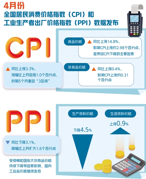 “進入4月份,隨著(zhu)國內新冠肺(fei)炎疫情防控向好的態(tai)勢(shi)進一步鞏固,生(sheng)產生(sheng)活秩序加快(kuai)恢復,食品價(jia)格同比漲幅回落(luo),帶動了(le)CPI的繼續下降。”國家統計局城市司高級統計師董莉娟(juan)說。